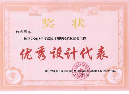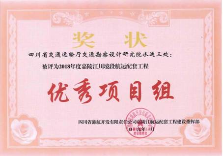 嘉陵江川境段航運(yùn)配套是四川省近年來(lái)開(kāi)工建設(shè)中規(guī)模較大的航道整治項(xiàng)目,該工程自2015年10月開(kāi)工以來(lái)我院水運(yùn)三處項(xiàng)目組成員一直積極主動(dòng)的配合業(yè)主開(kāi)展該項(xiàng)目的后期服務(wù)工作并在后期服務(wù)工作中表現(xiàn)突出、成績(jī)顯著,被四川省港航開(kāi)發(fā)有限責(zé)任公司嘉陵江航運(yùn)配套工程建設(shè)指揮部評(píng)為2018年度“優(yōu)秀項(xiàng)目組”榮譽(yù)稱號(hào),同時(shí)水運(yùn)三處何熙同志榮獲嘉陵江川境段航運(yùn)配套工程“優(yōu)秀設(shè)計(jì)代表”稱號(hào)。