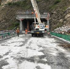 較場(chǎng)1號(hào)大橋位于疊溪隧道川主寺出口側(cè),本橋?yàn)樗畾Ш笾亟蛄?,新建橋梁采?孔77米簡(jiǎn)支鋼箱梁布置。本項(xiàng)目于2018年12月20日開工,目前鋼梁已架設(shè)完畢,橋面板澆筑完畢13天,項(xiàng)目業(yè)主要求本橋于近期通車。2019年5月30日至31日,公司橋隧處組織設(shè)計(jì)人員赴較場(chǎng)1號(hào)大橋設(shè)計(jì)回訪。