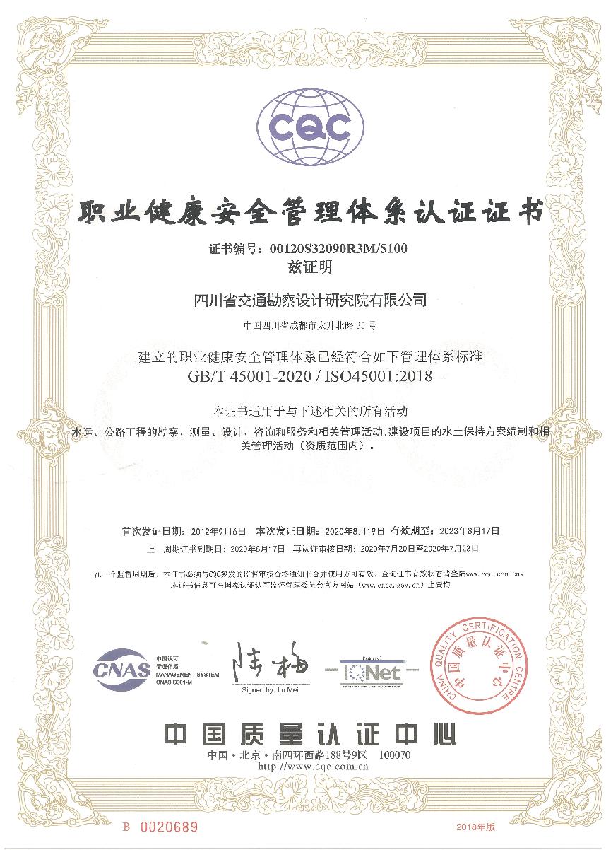 2020年7月20日-22日,中國檢驗認證集團四川有限公司對公司進行了質(zhì)量、環(huán)境管理體系再認證及職業(yè)健康安全管理體系轉(zhuǎn)版審核工作。經(jīng)現(xiàn)場審核,公司建立的質(zhì)量、環(huán)境、職業(yè)健康安全管理體系持續(xù)符合GB/T19001-2016/ISO9001:2015《質(zhì)量管理體系要求》、GB/T24001-2016/ISO14001:2015《環(huán)境管理體系要求及使用指南》、GB/T45001-2020/ISO45001:2018《職業(yè)健康安全管理體系 要求及使用指南》要求,體系運行有效。