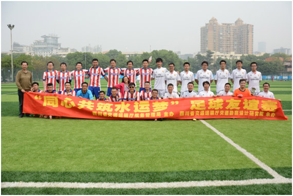 4月27日,由廳航務管理局團委主辦、我院團總支承辦的“同心共筑水運夢”足球友誼賽在四川大學西區(qū)球場順利舉行。廳航務局黨委副書記趙旭東親自帶隊參加比賽,院黨委副書記張世慧現(xiàn)場助威并發(fā)表了開賽致辭,局機關和我院分別組織了拉拉隊為比賽加油喝彩。