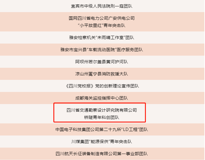 近日,共青團(tuán)四川省委、四川省青年聯(lián)合會(huì)聯(lián)合決定,授予29名個(gè)人第25屆“四川青年五四獎(jiǎng)?wù)?/span>”,授予30個(gè)集體第25屆“四川青年五四獎(jiǎng)?wù)录w”。我公司橋隧青年科創(chuàng)團(tuán)隊(duì)被授予第25屆“四川青年五四獎(jiǎng)?wù)录w”榮譽(yù)稱號(hào)。