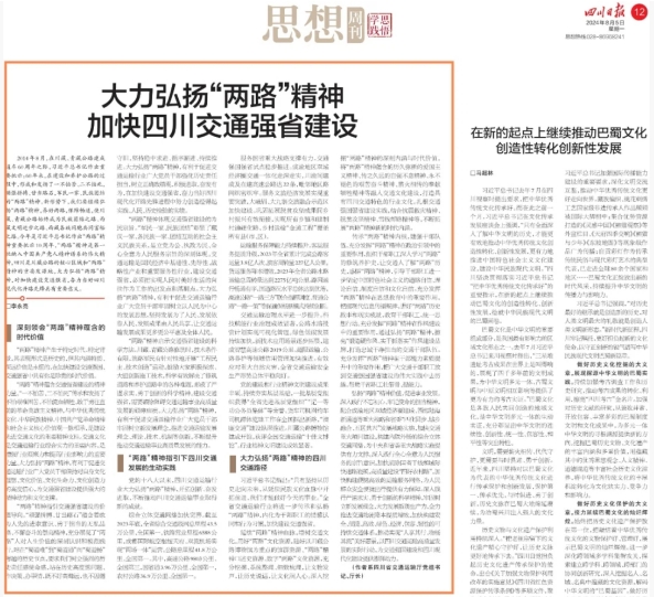 8月5日,廳黨組書記、廳長(zhǎng)李永亮在四川日?qǐng)?bào)第12版思想周刊發(fā)表署名文章《大力弘揚(yáng)“兩路”精神 加快四川交通強(qiáng)省建設(shè)》。