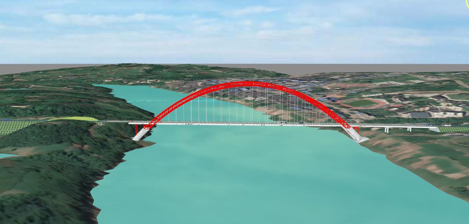 先市大橋位于瀘州市合江縣先市鎮(zhèn),跨越赤水河,是瀘州市渡改橋中的一座重要特大橋??鐝浇M合為3×25米現(xiàn)澆預(yù)應(yīng)力砼連續(xù)箱梁+240米中承式鋼管砼拱橋+1×25米現(xiàn)澆預(yù)應(yīng)力砼連續(xù)箱梁,全橋總長358.02米,橋?qū)?2米。為了提高結(jié)構(gòu)整體性和行車舒適性,同時為了減輕結(jié)構(gòu)自重,橋面系采用鋼格子梁的鋼-混凝土組合梁。拱座采用重力式,拱座底面根據(jù)基巖中風(fēng)化線的分布,縱向成階梯狀布置。