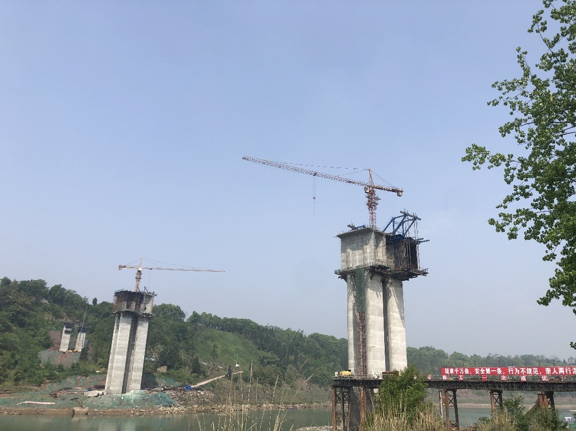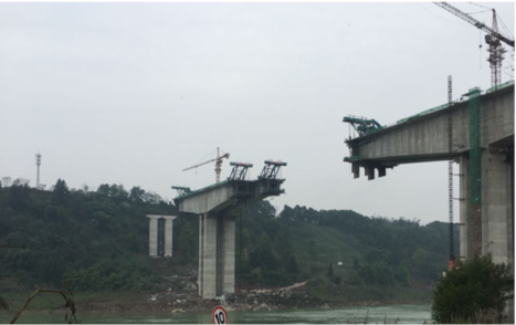 武勝中心嘉陵江大橋位于武勝縣境內(nèi),為中心渡口渡改橋梁,同時也為武勝縣跨越嘉陵江新增一條過江通道。項目包含主線及連接線工程,其中主線長1251米,含中心嘉陵江大橋一座及引道工程,路基寬度為23米。連接線長470米,路基寬度為10米。中心嘉陵江大橋橋梁全長1138米,主橋跨越嘉陵江,采用109+198+109米連續(xù)剛構(gòu)布置,引橋均采用34米簡支T梁。本橋橋高達86米,主橋采用了雙肢薄壁墩,引橋采用了矩形墩,使得全橋形式風(fēng)格統(tǒng)一,美觀大氣。