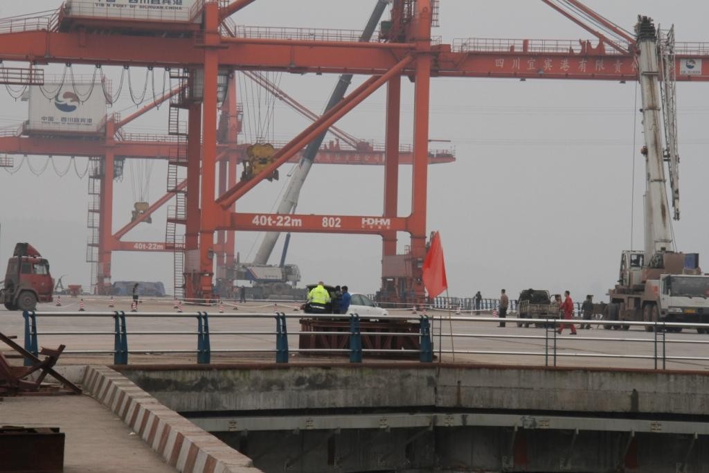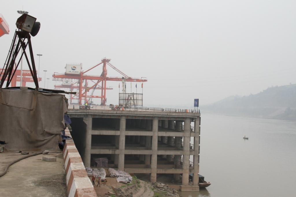 項(xiàng)目概況:四川宜賓港志誠(chéng)作業(yè)區(qū)一期工程位于宜賓是翠屏區(qū)沙坪鎮(zhèn),距宜賓市區(qū)12公里。工程建設(shè)規(guī)模為建設(shè)1000t級(jí)多用途泊位4個(gè),滾裝泊位1個(gè)(建設(shè)期可作為建筑材料進(jìn)口泊位)。其中多用途泊位集裝箱設(shè)計(jì)通過能力22.5萬TEU/年,件雜設(shè)計(jì)通過能力220.0萬t/年,滾裝設(shè)計(jì)通過能力10.0萬輛/年,占用岸線1120m,一期工程總投資13.1億元。4個(gè)多用途泊位碼頭前沿均采用鋼筋砼樁基承臺(tái)及上部框架結(jié)構(gòu),框架總長(zhǎng)435.4m,總寬34m。滾裝泊位位于多用途泊位上游,順岸布置下河坡道,坡道寬75m,長(zhǎng)約350m。