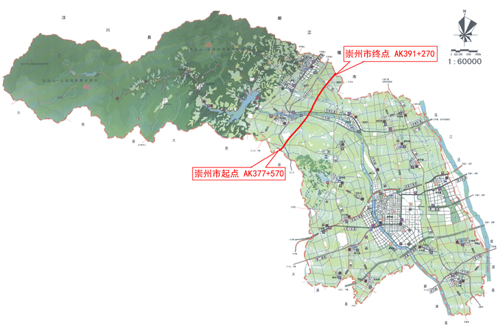 成都經濟區(qū)環(huán)線高速公路蒲江至都江堰段位于四川省成都平原西部,項目由主線(AK線)和連接線(K線)組成,其中:主線工程位于四川省成都市蒲江、邛崍、大邑、崇州、都江堰市(縣)境內,東經103°29′~103°37′,北緯30°20′~31°01′;連接線工程位于崇州、都江堰市境內。
